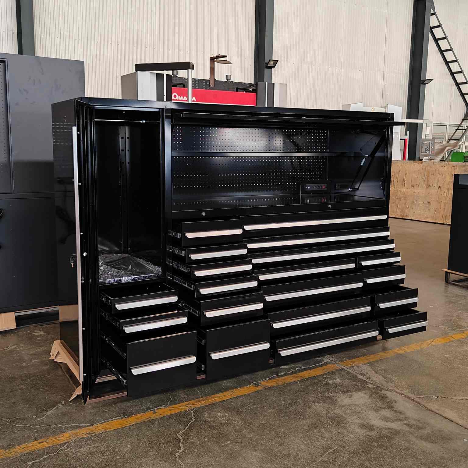 Το μαύρο πολυλειτουργικό ντουλάπι εργαλείων είναι κατασκευασμένο από κρύο έλασης χάλυβα που παρέχει καλύτερη αντοχή και φινίρισμα επιφάνειας.Κυάνιοςμπορεί να προσαρμοστεί το μέγεθος, τη διαμόρφωση και τα εξαρτήματα στις ανάγκες σας. Ο μαύρος πολυλειτουργικός πίνακας εργαλείων μπορεί να ενσωματώσει τη λειτουργικότητα, να μειώσει την κίνηση και να αυξάνει την αποτελεσματικότητα. Έχει ανθεκτική σε σκόνη ανθεκτική σε πετρέλαιο, χημικές ουσίες και τριβή. Τέλος και το πιο σημαντικό, πληροί τα πρότυπα της βιομηχανίας.