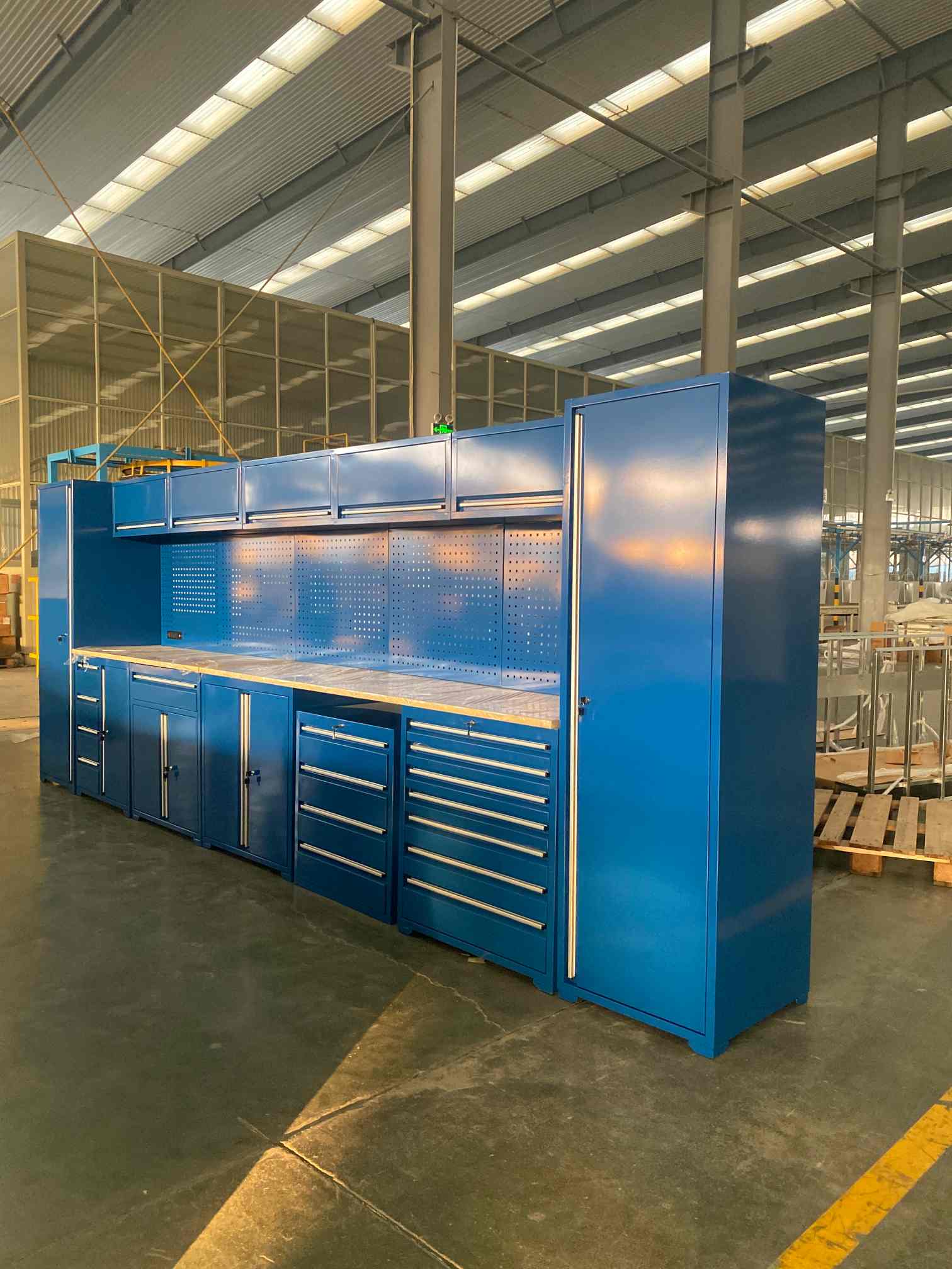 Ένα ντουλάπι αποθήκευσης γκαράζ βαρέως τύπου είναι ένα κομμάτι επίπλων υψηλής αντοχής που έχει σχεδιαστεί για σενάρια όπως γκαράζ και εργαστήρια όπου χρησιμοποιούνται συχνά βαριά αντικείμενα. Σε σύγκριση με τα συνηθισμένα ντουλάπια αποθήκευσης των νοικοκυριών, έχει επιτύχει "αναβαθμίσεις" σε πάχος υλικού, δομική αντοχή και ικανότητα φορτίου, μπορεί να φέρει βάρος δεκάδων ή ακόμα και εκατοντάδων κιλών. Επιπλέον, διαθέτει αντοχή στην κρούση, αντίσταση στη διάβρωση και αντίσταση στη φθορά, επιτρέποντάς της να αντέχει σε πολύπλοκα περιβάλλοντα σε γκαράζ, όπως υγρασία, λεκέδες πετρελαίου και συγκρούσεις με βαριά αντικείμενα, για μεγάλο χρονικό διάστημα. Έχει σχεδιαστεί ειδικά για την επίλυση του προβλήματος αποθήκευσης του πουθενά για να τοποθετήσει βαριά αντικείμενα και συνηθισμένα γραφεία που δεν είναι σε θέση να τα υποστηρίξουν.