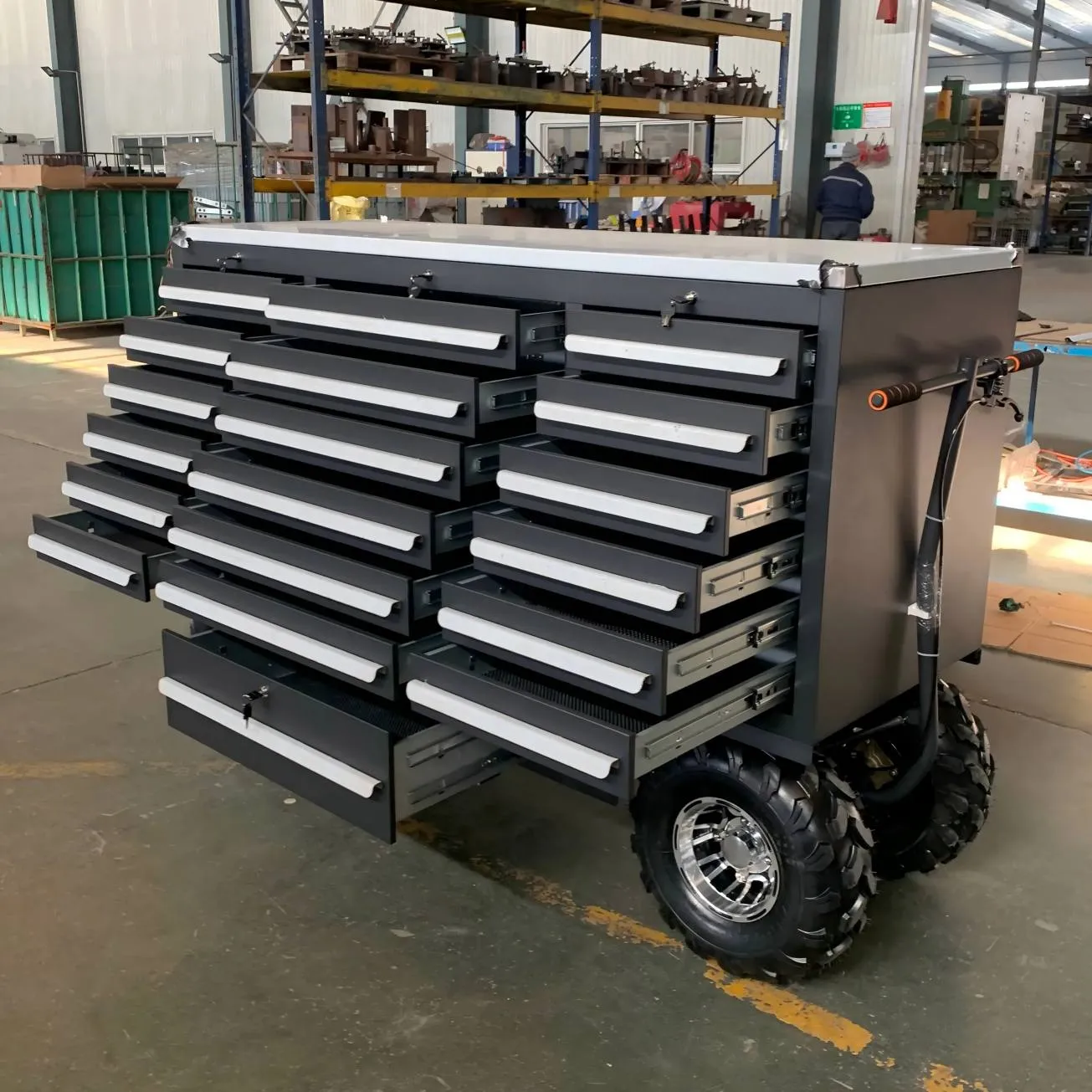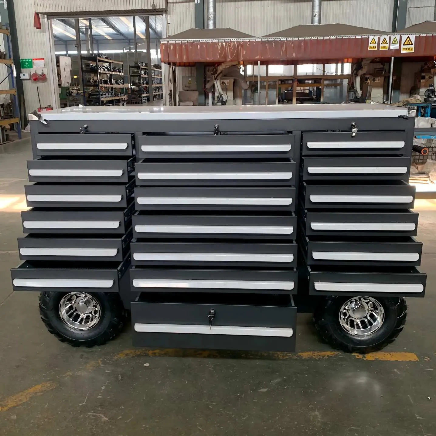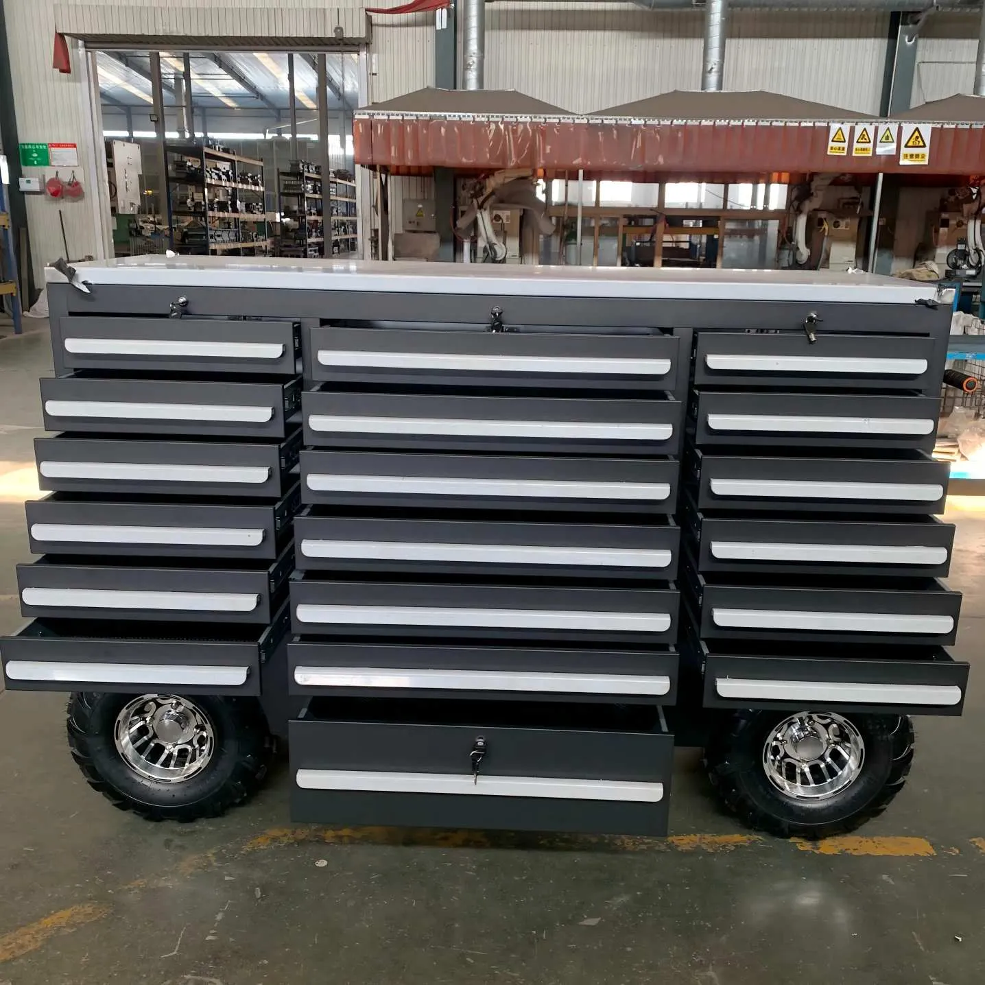 Ασφάλεια και αξιοπιστία: Τα συρτάρια είναι εξοπλισμένα με κλειδαριές για να εξασφαλίσουν την ασφάλεια των εργαλείων και να αποτρέψουν την απώλεια ή την μη εξουσιοδοτημένη χρήση. Ο σχεδιασμός του μαξιλαριού κατά της ολίσθησης στο εσωτερικό αποφεύγει την πτώση των εργαλείων και την κατεστραμμένη κατά τη διάρκεια της κίνησης.
